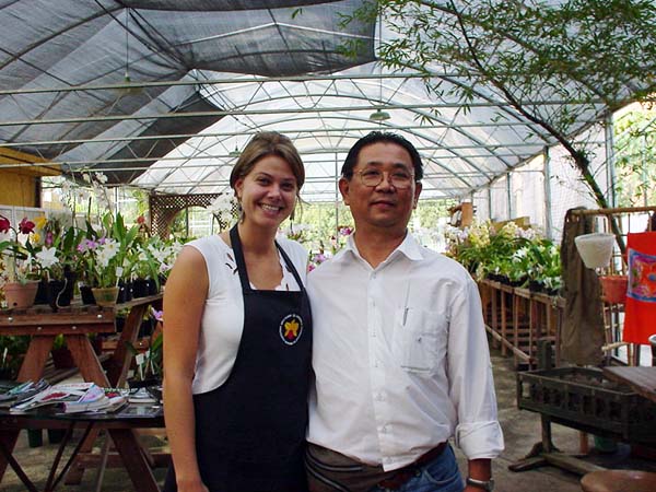 | サンパウロ郊外の美人蘭屋さん。 一緒に写ってしまったのは、サノさん。 . |