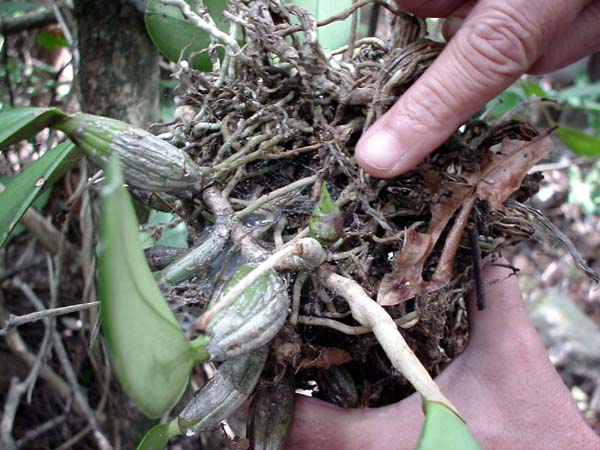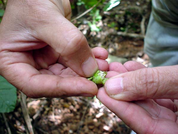 | 林に入って見上げると、20mほどの部分に花が見えます。 . |