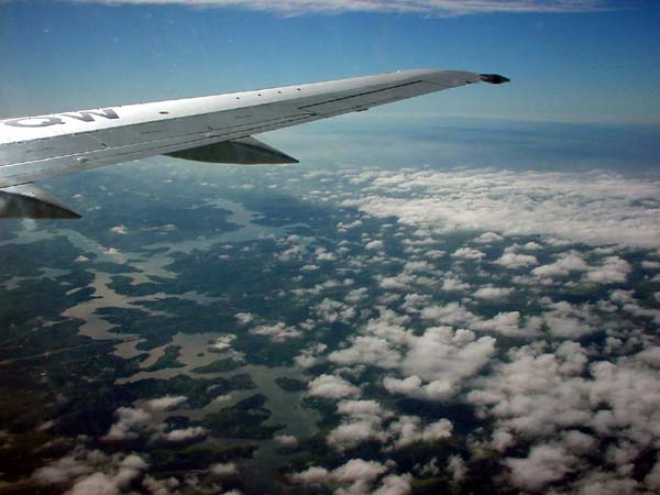 | 約1時間のフライトで、最初は川らしきものが見えてきますが 直ぐにミナス・ジェライス州の高原に入ります。 . |