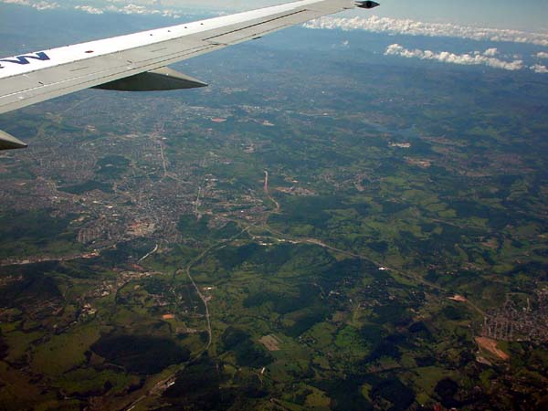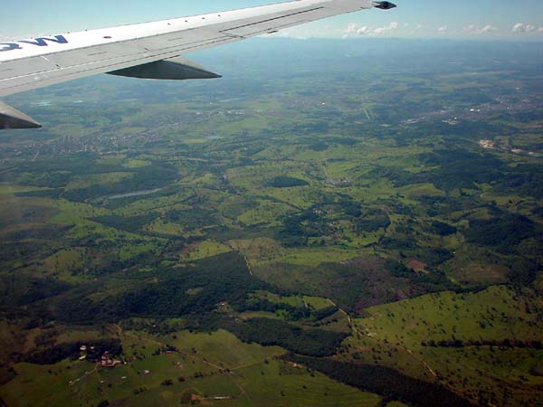 Bird's-eye view サン・パウロからトランジットでベロ・オリゾンテに向かう途中の景色です。 大雑把に言ってブラジルの南半分は、500〜1000mの高原地帯ですが 日本の様な森林はありません。土質や気候の影響なのか潅木程度です。 . |