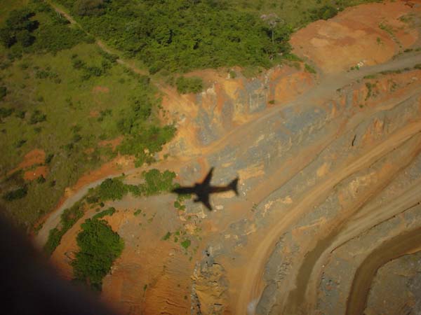 | ベロ・オリゾンテ国際空港に向けて高度を下げると 鉄鉱石の採掘場が所々に見えてきます。 実際にはもっと赤みの強い色です。 . |