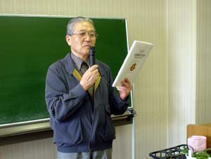 | 全蘭の例会でお嬢様の本の紹介の後、内容を解説する上田さんと、手にとって思い出を語る池谷さん。 . |