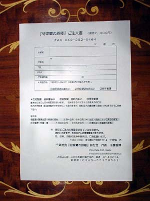 本の注文はこちらです。 注文書(COCOさんの胡蝶蘭の頁) E-mail : y-chiba@bk9.so-net.ne.jp Fax : 049-282-0464 『胡蝶蘭の原種』刊行会 代表 千葉雅博さんまで |