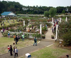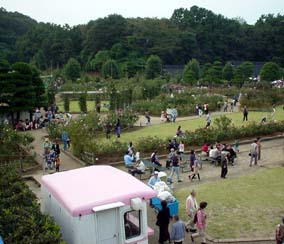 | 日曜日なので、バラ園も結構人出が多い。 . |