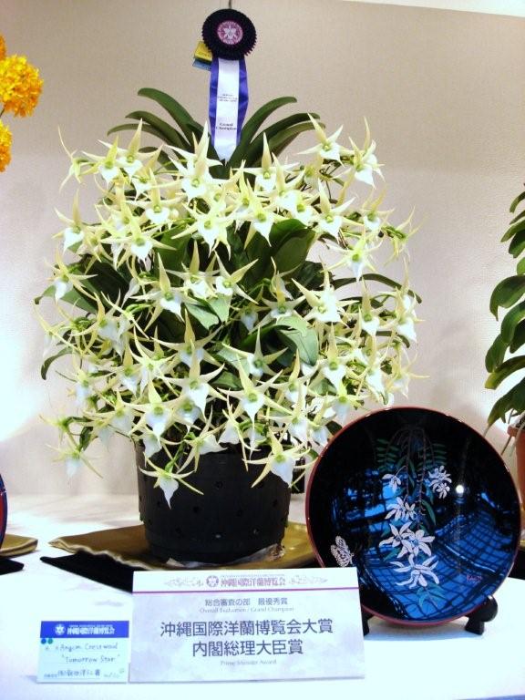 | 沖縄国際洋蘭博覧会大賞 (内閣総理大臣賞) Angcm. Crestwood 'Tomorrow Star' / アングレクム属 (有)新垣洋らん園 沖縄県糸満市 . |