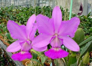 | 花の大きさは両株とも8x9センチですが、花バルブに着花した方が若干良いようです。 右の方がラテラルセパルとリップが、左より一回り大きいです。 ペタルがやや抱え込みますが、リップの張りが良い育て易い個体です。 . |