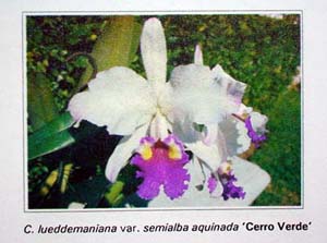 左頁: 上段の画像は、オリジナルのスタンレイとして 「ベネズエランカトレヤ」誌を引用して解説しています。 下段は、セロベルデのオリジナル株の解説です。 右頁: 上段の2個体は、セロベルデの紹介で解説は有りません。 下段の囲み記事では、 「A〜Cはアメリカでメリクロンされ、スタンレイとして フラスコ苗で輸入されたが、正式にはセロベルデである。」 として解説しています。 【補足】 アメリカから入った苗の名前は、 C. speciosissima var.semi-alba 'Stanley' MC です。 |