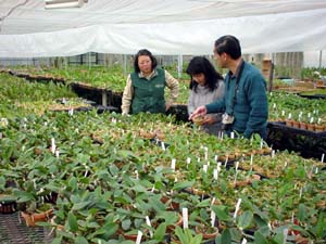 | 関ヶ原から少し東の山あいの温室。左がカトレヤ系、右がソフロ系温室。 季節には、いのししが出没するらしい… . |