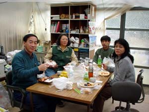 | 弁当持ち込みでひと休み。 一人欠席で4名+佐野さん=5名の例会 |