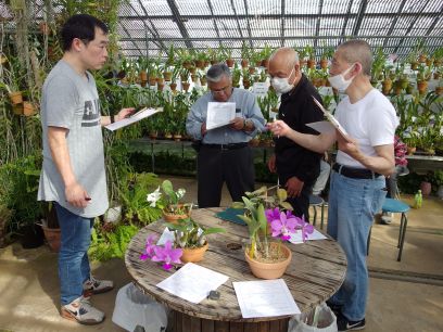 リボン審査 ◇C. walkeriana tipo 部門 Blue Ribbon C. walkeriana flamea‘Alagoas’(1花茎3輪) 小岩井 悟さん E White Ribbon C. walkeriana tipo ‘Osumi’(1花茎2輪) 仲田 彰さん E C. walkeriana tipo‘Hana’(1花茎2輪)石垣 寛さん E ◇C. walkeriana coerulea 部門 White Ribbon C. walkeriana coerulea‘Haru First’(1花茎2輪) 田村 和巳さん(非会員) ◇C. nobilior 部門 Blue Ribbon C. nobilior tipo‘Ruby’(1花茎2輪) 仲石 昭次さん E C. nobilior lilacina‘Sertanejo’(2花茎3輪2蕾) 益子 加津祐さん E Red Ribbon C. nobilior tipo‘Miina C922’(3花茎9輪) 石野 好胤さん E C. nobilior coerulea‘Alvaro Pereira’(1花茎2輪) 石野 好胤さん E C. nobilior tipo‘Campo Grande’(1花茎2輪) 小岩井 悟さん E 栽培賞 C. walkeriana aquinii‘Gifu’(5花茎8輪2蕾) 石野 好胤さん E 努力賞 C. nobilior tipo‘Ruby’(1花茎2輪) 津久井 大介さん E 審査委員賞 C. nobilior tipo‘Dona Unuma’(2花茎2輪2蕾) 小岩井 悟さん E 人気投票(Popularity