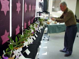 小春日和の好天と空いている駐車場に恵まれて年末の例会が始まりました。 新支部長に就任した西村さんから挨拶があり、司会も新支部長にバトンタッチされました。 東では研修審査員数が多いため、メインテーマは研修が終わるまで待って頂き、 その間、栽培相談を森さんの司会で行いました。 メインテーマのフレグランスは、全ランの香り審査員の資格を持つ森さんから 香り全般のお話と、ワルケの香りや展示株の香りの説明がありました。 審査では、フラメアがCBM(優れた特徴を有する個体)として初めて認定されました。 Adonisが3個体出品され、しっかりと咲いていた株が、チポ部門のブルーリボンと 人気投票に入りました。株の作りで花が少しずつ違っていました。 恒例となったディスカッションタイムでは、Orchidgladeの話題や 会の運営、会の進む方向など忌憚の無い意見が出て 5時のリミットまで議論が続きました。 次回以降の東の例会は、2月11日と4月29日の祝日に行ないます。 詳しくはNewsletterをご覧ください。 . |