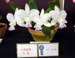 メダル審査(正式審査) HCC/ACWJ 76p C.walkeriana tipo 'Satox' (1花茎2輪) 佐藤悦朗さん E HCC/ACWJ 75p C.walkeriana tipo 'Terao' (1花茎3輪) 寺尾やえさん E HCC/ACWJ 75p C.walkeriana coerulea 'Azul Perfecta Inverno' . (1花茎2輪) 田村和巳さん E CBM/ACWJ C.walkeriana flamea 'Jucelene' (1花茎1輪+1蕾) 佐藤悦朗さん E リボン審査 ◇ワルケリアナ(tipo)部門 Blue Ribbon C.walkeriana tipo 'Adonis' (1花茎2輪) 遠藤奈々子さん E Red Ribbon C.walkeriana tipo 'Terao' (1花茎3輪) 寺尾やえさん E White Ribbon C.walkeriana tipo 'Satox' (1花茎2輪) 佐藤悦朗さん E ◇ワルケリアナ(coerulea)部門 Blue Ribbon C.walkeriana coerulea 'Azul Perfecta Inverno' . (1花茎2輪) 田村和巳さん E Red Ribbon C.walkeriana coerulea 'Aroma Ley' (1花茎2輪) 佐藤修康さん E White Ribbon C.walkeriana coerulea 'Smailin Face'x self (1花茎1輪) 佐藤悦朗さん E ◇ワルケリアナ(perola)部門 Blue Ribbon C.walkeriana perola 'Acucar Alegre' (2花茎4輪) 佐藤修康さん E Red Ribbon C.walkeriana perola 'Takenaka' (1花茎3輪) 田村和巳さん E White Ribbon C.walkeriana perola 'Ann' (1花茎3輪) 田村和巳さん E ◇審査委員賞(Judge prize) C.walkeriana flamea 'Jucelene' (1花茎1輪+1蕾) 佐藤悦朗さん E ◇努力賞(Cultivation prize) C.walkeriana coerulea 'Oh-Ishi' (11花茎21輪) 大石信夫さん E 人気投票 (Popularity vote) 第1位 C.walkeriana perola 'Acucar Admirar' (1花茎1輪) 佐藤修康さん E 第2位 C.walkeriana tipo 'Adonis' (1花茎2輪) 遠藤奈々子さん E 第3位 C.walkeriana perola 'Acucar Alegre' (2花茎4輪) 佐藤修康さん E *E:東日本支部 W:西日本支部 . |