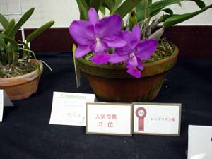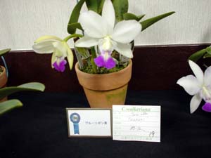メダル審査(正式審査) 申請ナシ リボン審査 ◇walkeriana naturaul 部門 Blue Ribbon 該当なし Red Ribbon C.walkeriana lilasina 'Lina' (1花茎2輪) 田村和巳さん E White Ribbon C.walkeriana tipo (1花茎2輪) 村上 旭さん E ◇walkeriana その他部門 Blue Ribbon C.walkeriana perola 'Puanani' (1花茎2輪) 櫻庭 智さん E Red Ribbon C.walkeriana tipo 'Feiticeira' (1花茎2輪) 小林莞児さん E White Ribbon C.walkeriana coerulea '4270R' (1花茎2輪) 森 俊人さん E ◇nobilior 部門 Blue Ribbon C.nobilior 'Sensation' x self (2花茎4輪) 中村達司さん E Red Ribbon C.nobilior 'Dona Unuma' (1花茎2輪) 半谷輝己さん E White Ribbon C.nobilior 'Charenger' (1花茎2輪) 佐藤修康さん E 審査員賞他 審査員賞 C.nobilior 'Sensation' x self (2花茎4輪) 中村達司さん E 努力賞 C.nobilior 'SE6-231'x’D.R.Wenzel' (2花茎5輪) 佐藤悦朗さん E 人気投票 (Popularity vote) 第1位 C.nobilior 'Dona Unuma' (1花茎2輪) 半谷輝己さん E 第2位 C.nobilior 'Sensation' x self (2花茎4輪) 中村達司さん E 第3位 C.walkeriana 'Feiticeira' (1花茎2輪) 小林莞児さん E *E:東日本支部 W:西日本支部 . |
