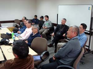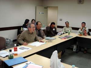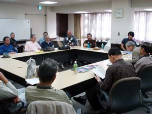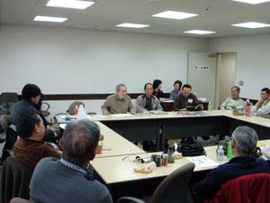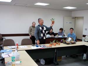 | 行事 (1)-1 研修審査+正式審査(議長:佐藤さん) (1)-2 交配の理想について(担当:山下さん) (2) 東京ドームの報告ほか(担当:田村さん) (3)株交換会(司会:山下さん) (4) 「交配についてあれこれ」パネルディスカッション(進行:森さん) パネラー:田村さん 佐藤(修)さん (5) 入賞花・出品花の解説(佐藤さん) . | |