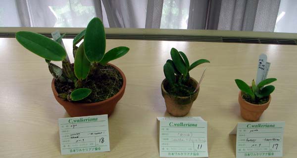 東日本支部主催 第52回例会報告 北の丸公園、科学技術館 6階第2会議室 平成18年 6月 4日 PM1:00〜5:00 (June 4, 2006) *** 参加者総数 16名 会員:16名 見学者:0名 ( East: 16 West: 0 Visitor: 0) 出品株数 14株 内訳 C.walkeriana : 5plants (tipo:2 perola:2 amoena:1) C.nobilior:9plants (amaliae:9 ) . |