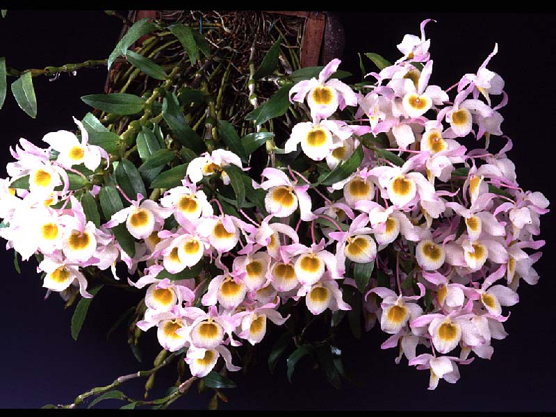 202バルブ、113花茎6,930輪咲き2,070蕾付き、木枠に水苔植え