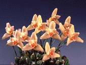 8バルブ、2花茎20輪咲き、プラスチック鉢にミックスコンポスト(バーク、パーライト)植え