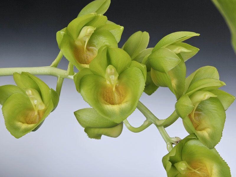 | 全高30.0、花茎長35.0、株幅56.0cm。花付バルブ数1。 1花茎 10輪咲き。 |