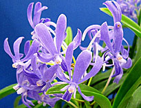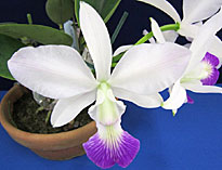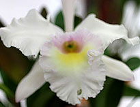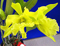 Rhyncholaelia属が各1点、Rhyncholaeliocattleya属が3点、の5属9種13品種であった。一位は拡散性が非常に強くフルーティな甘い香りの4属交配種Dar. Charm‘Blue Moon’で1987年の登録。ふうらんは一般に昼間は香りが弱く夕方から夜間にかけて拡散性の強い良い香りを発するが本種は昼間でもよく香る。香る蘭の交配種としては高い評価を受けている。Pf.は10.5pts.とやや低得点。2位はカトレヤ原種のノビリオール。ローズ調の上品な香りが評価。香りの成分分析(注1)でノビリオールにはワルケリアナに含まれているMethyl cinnamateをほとんど含まず質的にも異なっている。おとなしい上品さが評価。三位は同じくカトレヤ原種のワルケリアナのセルレア。新鮮な違和感のない上品な香りが評価。これ以外にRl.(B.)glauca は質的には素晴らしい香りを出していたがやや弱かったためか一部の審査員にしか評価されなかったのが残念。また過去に入賞経歴のあるRlc. Chia Lin 、今回は香りのバランスを崩していた。