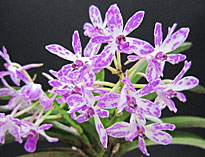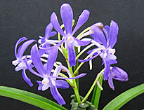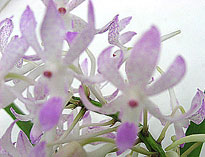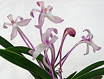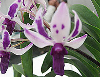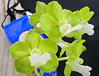 今月はBrassavola属1点、Cattleya属3点、Dendrobium属Epidendrum属、Neostylis属、Neosedirea属、Sedirea属、各1点の7属と比較的多彩な出品となった。一位はNeost. Dainty‘Pink Spots'。毎年この季節に開花し、上品な違和感のない甘い日本人好みの香りが評価された。一日中傍に置いておいても心地よい香りがするのが良い香りの花の一つの基準。尚、個体名‘Sweet'が名古屋国際蘭展でスズランとふうらんの香りで優良賞に入賞している。二位はNeost. Pinky‘ Fumi'。片親が一位と同じNeof. falcata。もう一方の親にretusaの代わりにgiganteaが用いられ、甘さはNeof. falcata由来で共通していたが南方系の化粧品の香りを発していた。共にふうらんの血が入っているが昼間でも良く香る。Neost.属には他にLou Snearyが良い香りの花として知られている。三位はLady of the night(夜の女王)の愛称を持つB. Little Stars。夜に美しい純白の花からよい香りを発する本種は審査時間帯には香りはやや弱かったが新鮮なバランスのとれた上品な香りが評価。他に有香花としてB. fragransが知られている。Rl.(B.) glauca とは香り成分で共通点が多いが、glaucaはgeraniolに代わってcitronellolが含まれる点で異なっている。僅差で次点になったのはC. schillerianaで強い拡散性の香りを発していたが上品さにやや欠けていた。また夜に強い香りを発するナゴランが出品されていたが審査時間に本来の香りを出しきれていなかった。(記:森 俊人)
